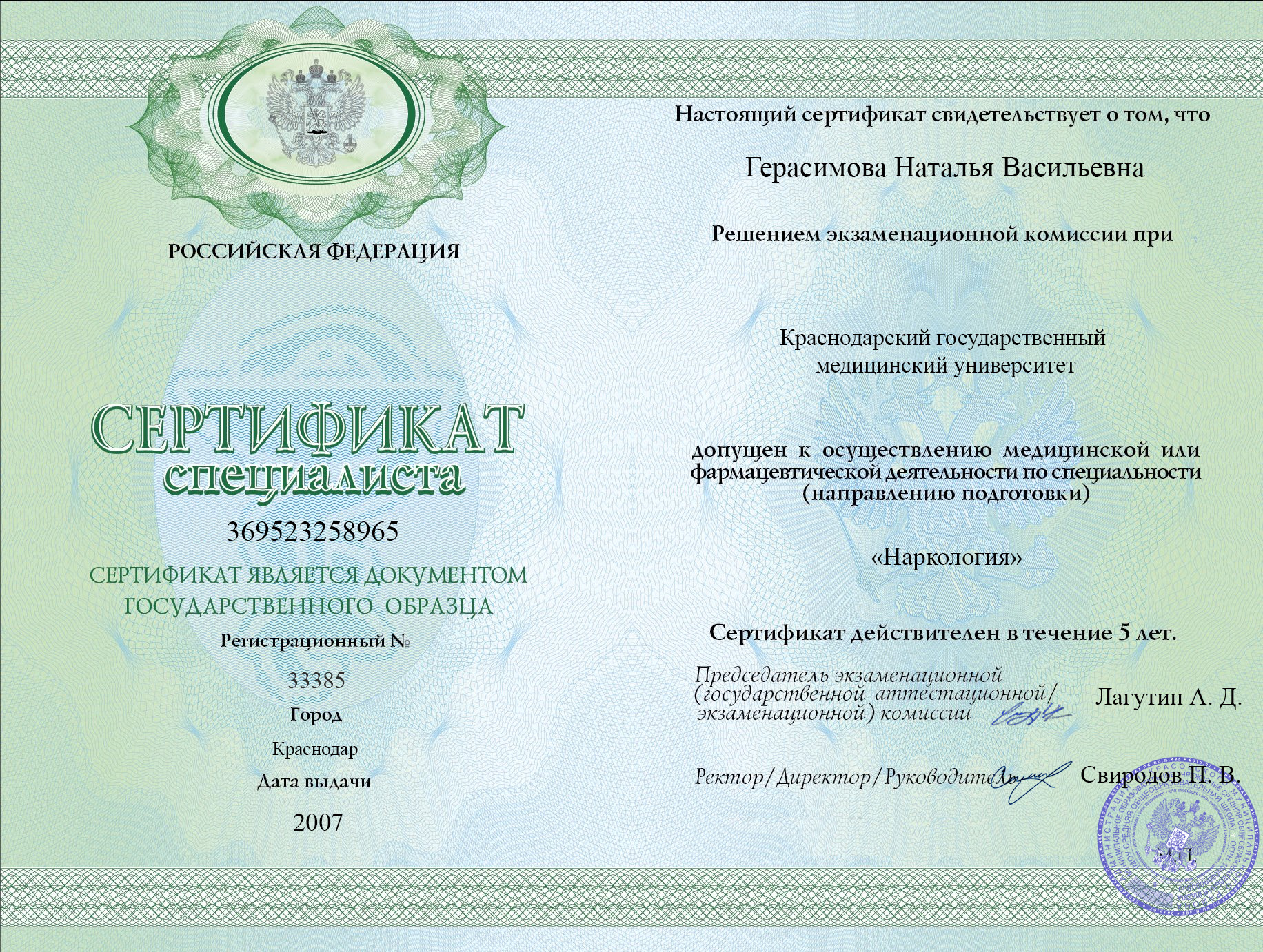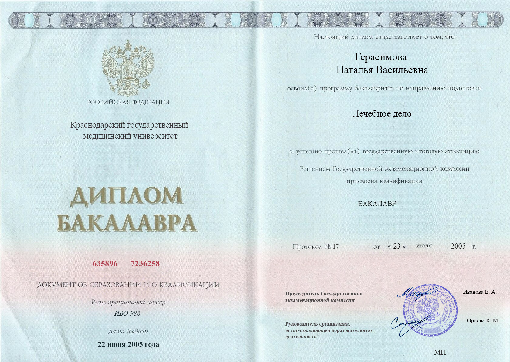 ВУЗ: Краснодарский государственный медицинский университет, 2005 г.